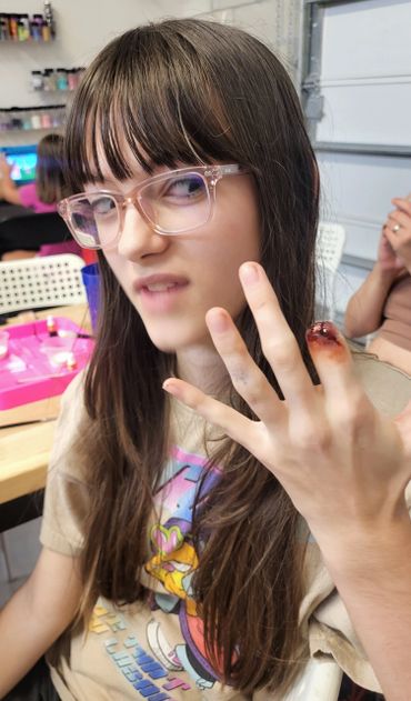 Hi, Iโm Tifinie, the spooky hostess behind Pretty Dead Parties. For over 10 years Iโve been teaching kids, teens, and young adults the art of special effects makeup at theme parks, workshops, and camps across Central Florida. Iโve always loved the strange, the unusual, and the beautifully broken โ and I believe thereโs nothing cooler than turning that creativity into a celebration. I will guide your guest through crafting creepy cuts, bruises, and severed fingers. My passion is helping kids embrace their imagination, learn new skills, and discover that sometimes being โa little dead insideโ is the most fun of all.
